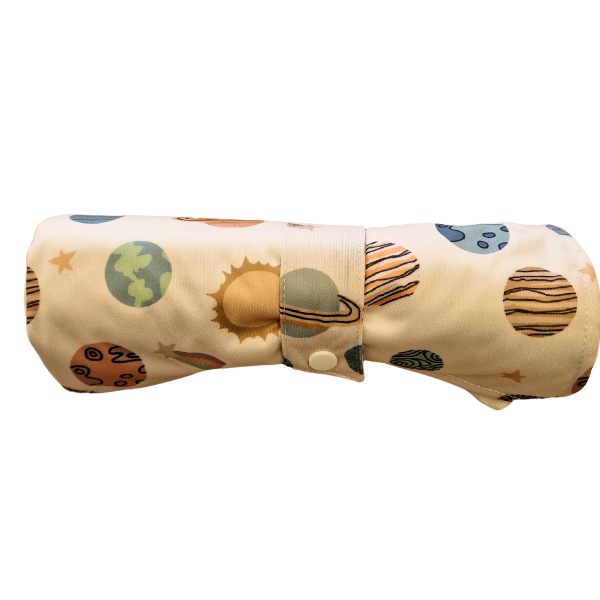 Zu Hause benötigst du in der Regel eine Mullwindel unter deinem Baby aber unterwegs sind unsere weichen Wickelunterlagen, die sich auch noch klein zusammenrollen lassen, perfekt. So ist dein Baby vor verschmutzten Wickeltischen oder kalten Böden geschützt und liegt weich.